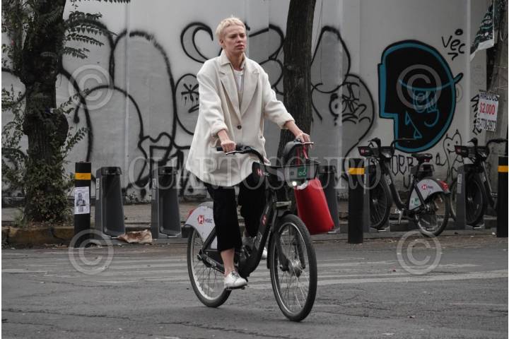CIUDAD DE MÉXICO, 25DICIEMBRE2024.- Una mujer pedalea una bicicleta Ecobici en la alcaldía Cuauhtémoc. El Proyecto de Presupuesto de Egresos de la capital del país para el Ejercicio Fiscal 2025 incluye una asignación de recursos para la expansión de la infraestructura ciclista y el sistema Ecobici, como parte de una estrategia para impulsar la movilidad sustentable en la capital. FOTO: GRACIELA LÓPEZ/CUARTOSCURO.COM