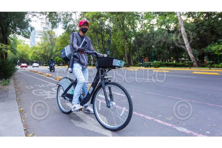 Un joven recorre la ciudad a bordo de una bicicleta del programa Ecobici.