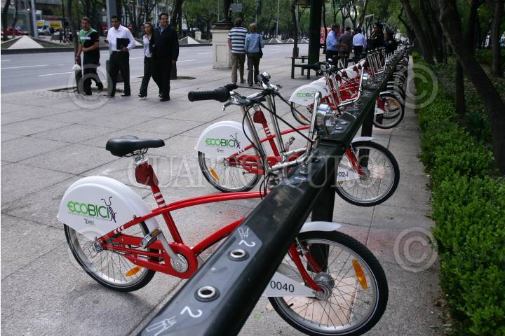 MÉXICO, D.F., 16FEBRERO2010.- Las nuevas Ecobicis con las que el gobierno del Distrito Federal pretende mejorar las vialidades en la ciudad, ya se pueden rentar sobre Paseo de la Reforma. FOTO: ISAAC ESQUIVEL/CUARTOSCURO.COM