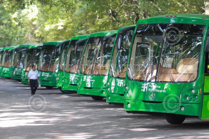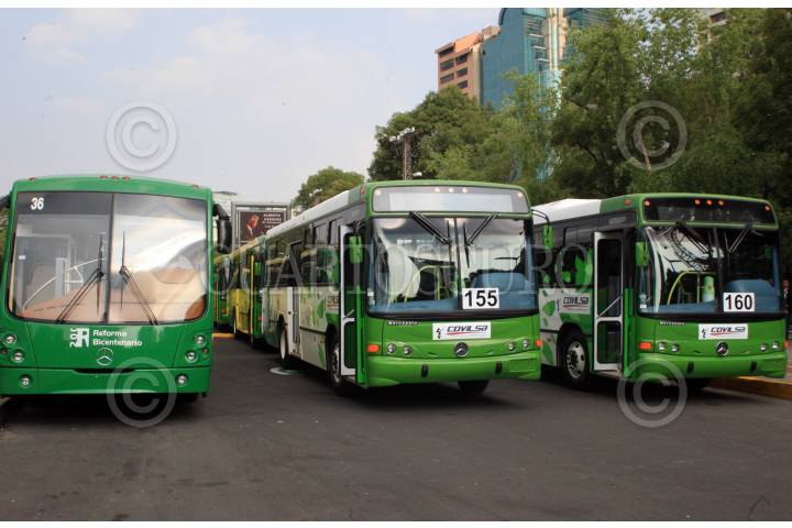 MÉXICO D.F., 29JUNIO2009.- El gobierno del Distrito Federal, presento esta mañana los autobuses ecológicos que circularán por el Corredor Reforma, en sustitución de 369 microbuses contaminantes, estos autobuses serán usados por alrededor de 175 mil personas y las unidades tendrán cámaras de monitoreo interno, GPS y pantalla de plasma con programación para los pasajeros. FOTO: RICARDO CASTELAN/CUARTOSCURO.COM