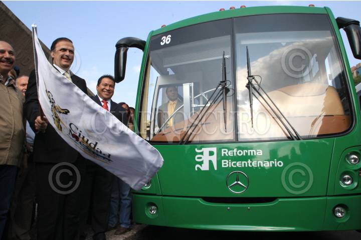 MÉXICO, D.F., 11OCTUBRE2010.- Se dio el banderazo de salida a los nuevos turibuses ecológicos que circularan por la ciudad. FOTO: ENRIQUE ORDÓÑEZ/CUARTOSCURO.COM