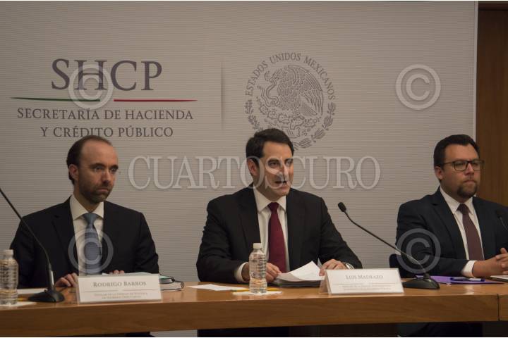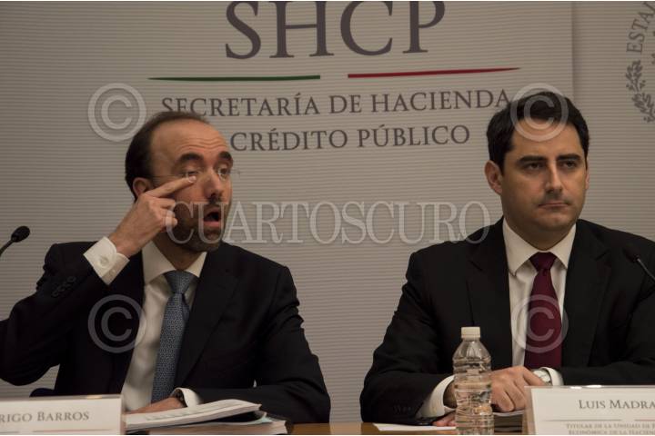 CIUDAD DE MÉXICO, 29ABRIL2016.- Luis Madrazo, titular de la Unidad de Planeación Económica de la Hacienda Pública, en compañía de Rodrigo Barros, titular de la Unidad de Política de Ingresos Tributarios e Isaac Gamboa, titular de la Unidad de Política y Control Presupuestario, ofreció conferencia de prensa para informar acerca de la situación económica, las finanzas públicas y la deuda pública al primer trimestre de 2016. FOTO: GALO CAÑAS /CUARTOSCURO.COM