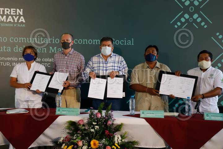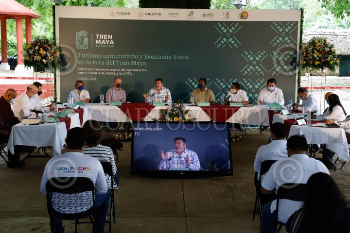 En la comunidad de Ek Balam se realizó la firma entre el Fonatur, INAES y APTC, para impulsar el turismo comunitario y economía social en la ruta del Tren Maya.