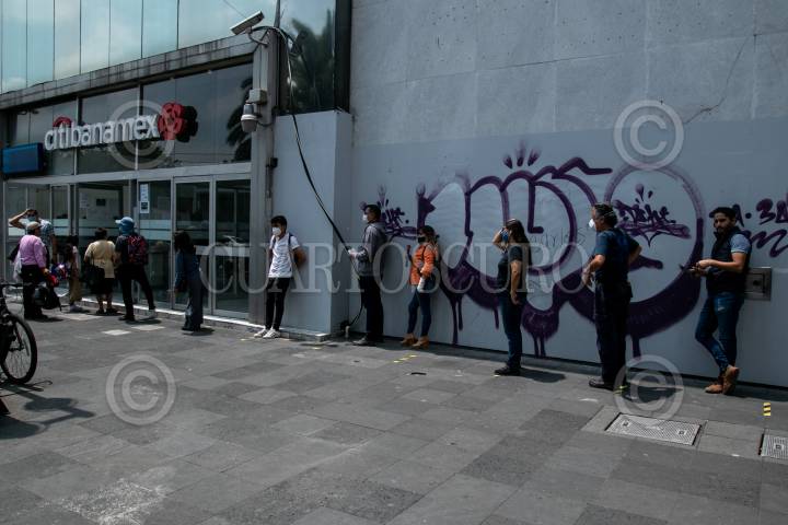 Capitalinos realizan filas en las sucursales bancarias para poder realizar movimientos, o bien, cubrir pagos.