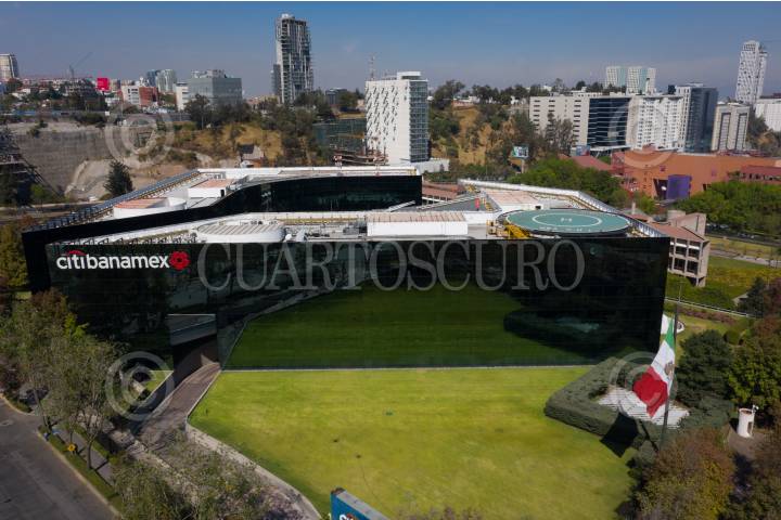 Aspectos del corporativo de Citibanamex, ubicado en Santa Fe. El día de ayer se anunció que Citigrouo pondrá a la venta la marca Banamex en sus productos de banca de consumo y empresarial.