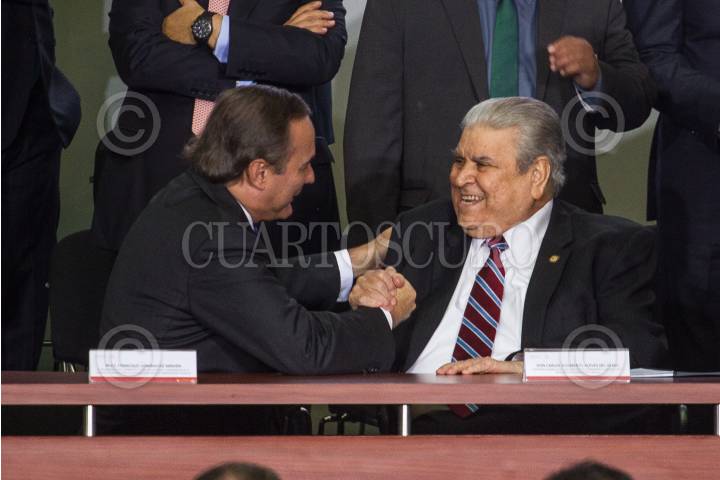 CIUDAD DE MÉXICO, 29AGOSTO2017.- Juan Pablo Castañón, presidente del Consejo Coordinador Empresarial, y Carlos Aceves del Olmo, dirigente de la CTM, durante el "Acuerdo para el Fortalecimiento Económico y la Protección de la Economía Familiar", en Palacio Nacional. FOTO: ISAAC ESQUIVEL /CUARTOSCURO.COM