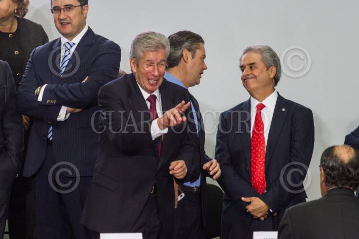 CIUDAD DE MÉXICO, 29AGOSTO2017.- Los secretarios Gerardo Ruiz Esparza, de Comunicaciones y Transportes, y Aurelio Nuño, de Educación, durante el "Acuerdo para el Fortalecimiento Económico y la Protección de la Economía Familiar", en Palacio Nacional. FOTO: ISAAC ESQUIVEL /CUARTOSCURO.COM