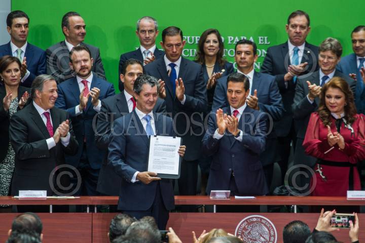 CIUDAD DE MÉXICO, 29AGOSTO2017.- El presidente Enrique Peña Nieto encabezó el "Acuerdo para el Fortalecimiento Económico y la Protección de la Economía Familiar", en Palacio Nacional. En la imagen Santiago Urquiza, presidente de Central de Corretajes, recibió la concesión a la nueva Bolsa Institucional de Valores. FOTO: ISAAC ESQUIVEL /CUARTOSCURO.COM
