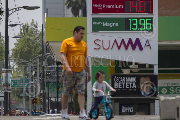 CIUDAD DE MÉXICO, 04ABRIL2018.- Cotización del precio de la gasolina en una gasolinera de la colonia Tabacalera. La Pemex Premium $19.$9 y la Magna $17.99. FOTO: MOISÉS PABLO /CUARTOSCURO.COM