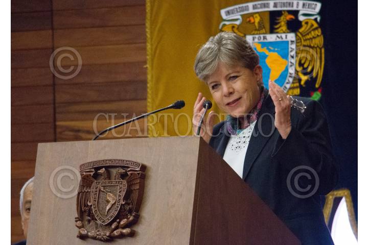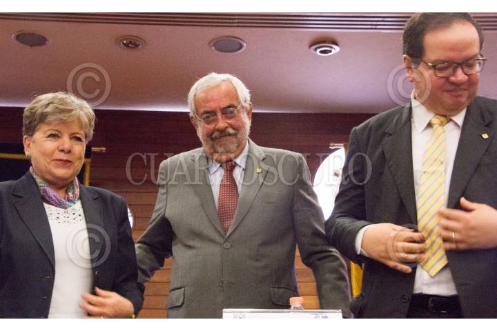 CIUDAD DE MÉXICO, 12FEBRERO2018.- El Doctor Enrique Graue, rector de la UNAM inauguró esta mañana en la Unidad de posgrado de la Facultad de Economía, el Seminario "Cambio de Epoca", una de las principales exponentes, Alicia Bárcenas integrante de la Cepal. FOTO: VICTORIA VALTIERRA /CUARTOSCURO.COM