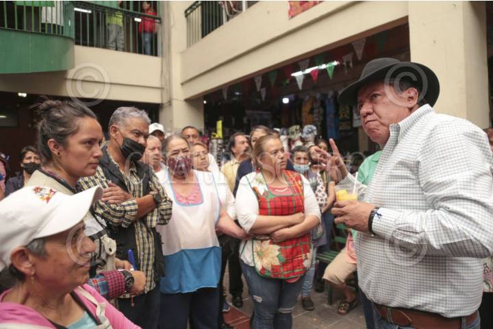 David Monreal Ávila, gobernador de Zacatecas, visitó los mercados del municipio de Fresnillo, donde dialogó con locatarios y se comprometió a apoyarlos para impulsar sus negocios, especialmente, los pequeños, a los cuales irá dirigida la estrategia de reactivación económica pos-pandemia.