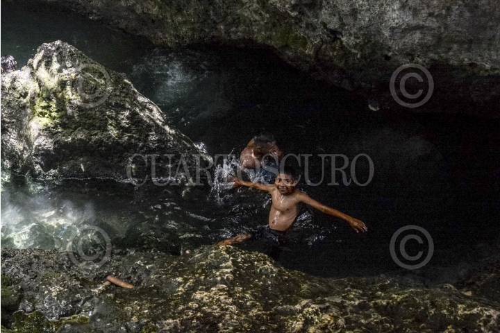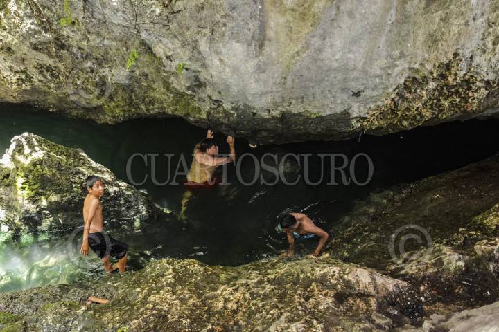 CANCÚN, QUINTANA ROO, 30JULIO2016.- Niños de escasos recursos se divierten y refrescan en un pequeño cenote ubicado en la colonia Avante en la periferia de Cancún. FOTO: ELIZABETH RUIZ /CUARTOSCURO.COM