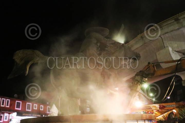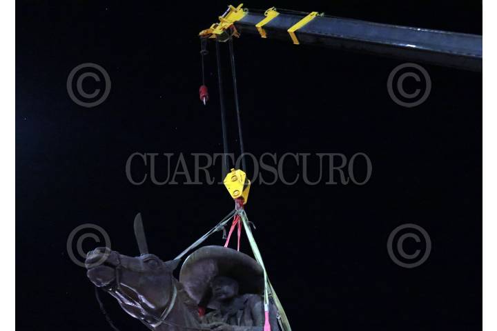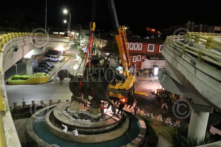 CUERNAVACA MORELOS, 08DICIEMBRE2018.- La madrugada de este sábado inicio la remoción de la estatua emblemática del General Emiliano Zapata, ubicada en la glorieta de Buena Vista en el ingreso norte de la ciudad. La escultura ecuestre colocada en 1979, de los artistas Estela Ubando y Carlos Kunte, de acuerdo con las autoridades del estado será montada en el paso exprés. FOTO: MARGARITO PÉREZ RETANA /CUARTOSCURO.COM