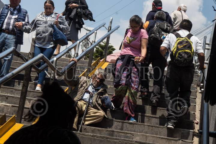 CIUDAD DE MÉXICO, 25JUNIO2018.- Un señor de la tercera edad en condición de calle pide limosna en las escaleras de Metro Chapultepec. FOTO: TERCERO DÍAZ /CUARTOSCURO.COM