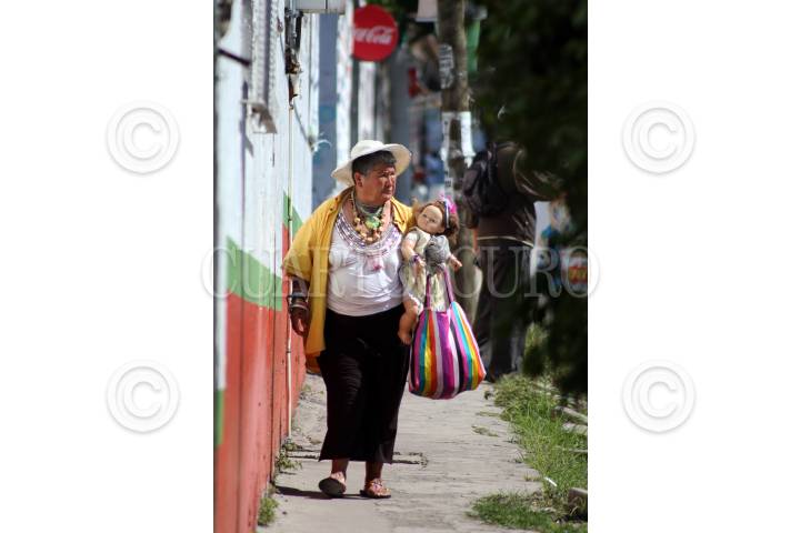 CUERNAVACA, MORELOS, 18JULIO2018.-Una mujer de la tercera edad ataviada con anillos, collares y pulseras multicolores camina por la calle Estado de Puebla, al sur de la capital, con una muñeca en sus brazos. FOTO: MARGARITO PÉREZ RETANA /CUARTOSCURO.COM