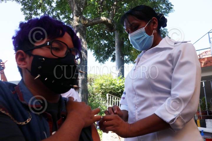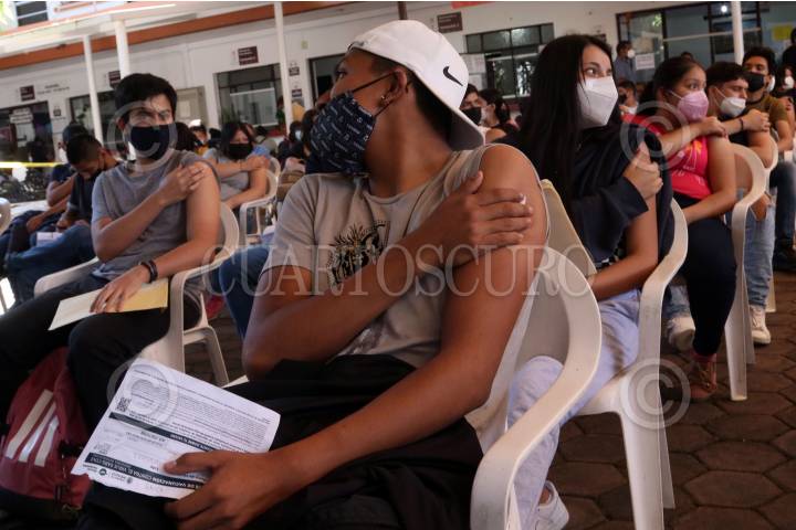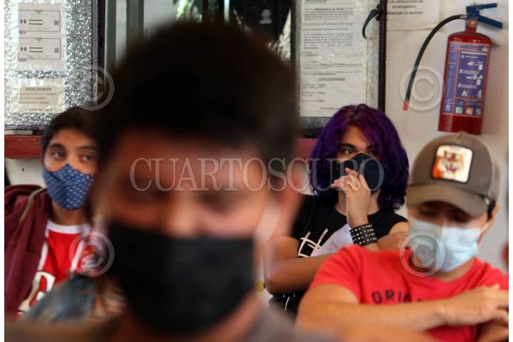 Gran respuesta tuvo la convocatoria para que jóvenes de 15 a 17 años reciban la primera dosis de la vacuna Pfizer contra el Covid-19. En la imagen el centro de aplicación ubicado en el ayuntamiento de la capital.