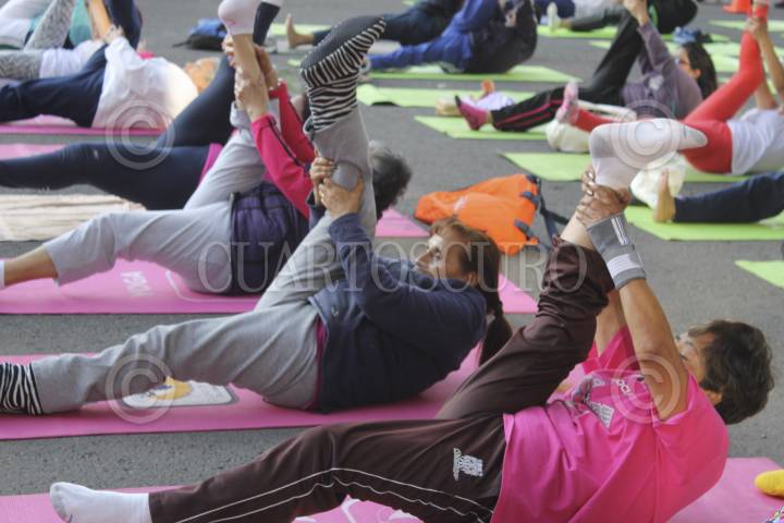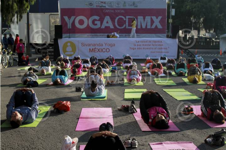 MÉXICO, D.F., 16AGOSTO2015.- Personas de todas las edades se presentaron a la clase masiva de yoga que fue impartida en la glorieta de Diana la Cazadora. FOTO: DANIEL HUERTA /CUARTOSCURO.COM