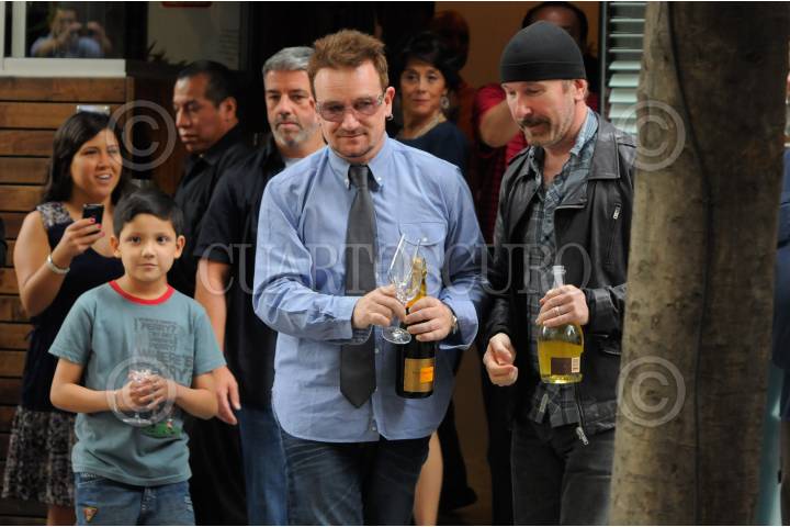 MÉXICO, D.F., 10MAYO2011.- Bono, vocalista de la banda de rock, U2, brindaron con fans con motivo del cumpleaños 51 del rockero irlandes. Esto en el marco de su gira 360 grados que comienza el 11 de Mayo en el estadio Azteca de esta capital. FOTO: FRANCISCO RODRIGUEZ/CUARTOSCURO.COM