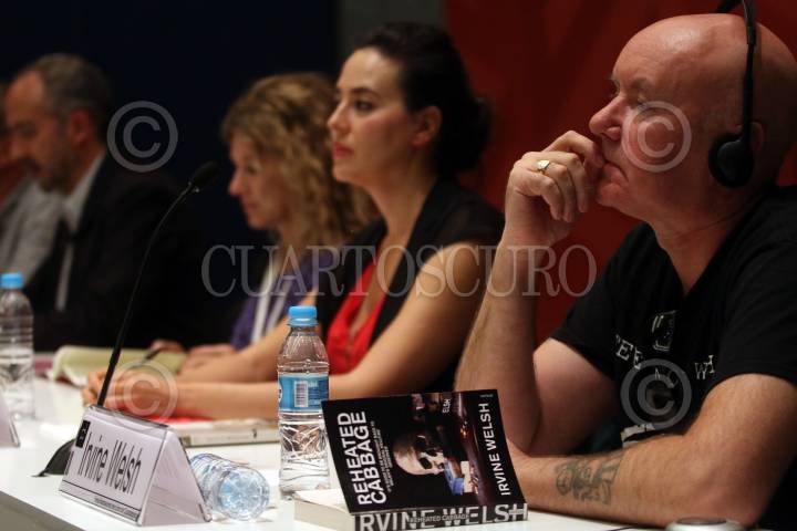 GUADALAJARA, JALISCO, 04DICIEMBRE2015.- Andrea Jeftanovic, Mauricio Montiel, Mariana Perezagua, e Irvine Welsh, participarón en el Encuentro Internacional de Cuentistas, esto en el marco de la edición 29 de la Feria Internacional del Libro de Guadalajara FIL, que tiene como país invitado de honor al Reino Unido. FOTO: FERNANDO CARRANZA GARCIA / CUARTOSCURO.COM