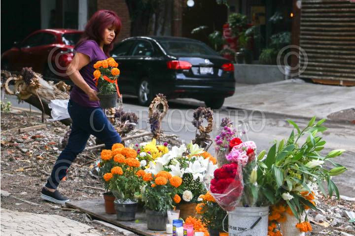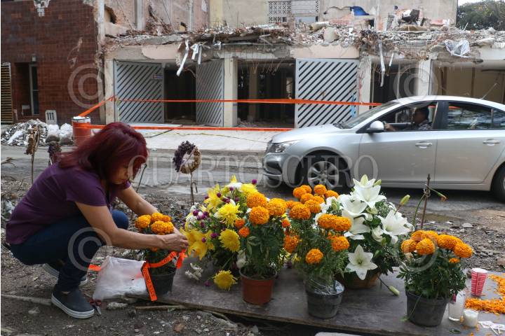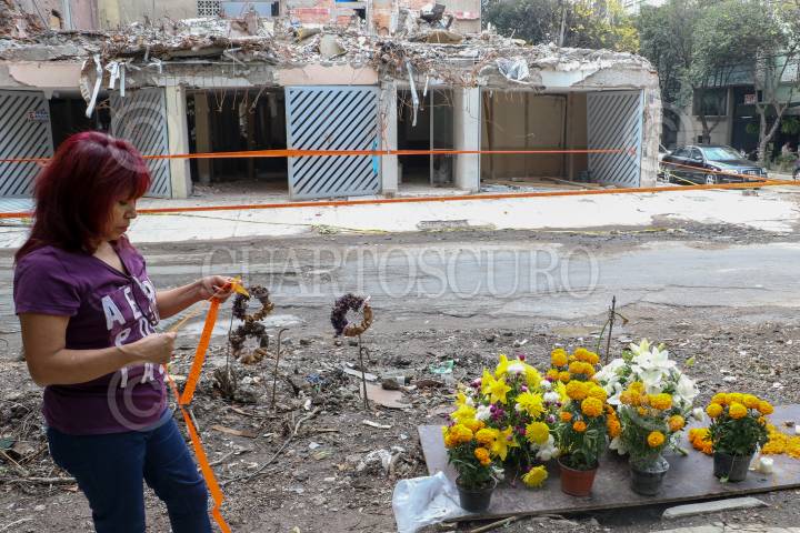 CIUDAD DE MÉXICO, 01NOVIEMBRE2017.- Familiares y habitantes de la colonia Condesa, colocan un altar de muertos frente al edificio derrumbado en el cruce de las avenidas Amsterdam y Laredo ubicado en la colonia Condesa FOTO: SAÚL LÓPEZ /CUARTOSCURO.COM