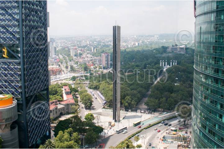 CIUDAD DE MÉXICO., 23AGOSTO2017.- Vista de la torre Bancomer, la estela de la luz y la torre Mayor, al fondo el bosque de Chapultepec durante un día poco contaminado. FOTO: DIEGO SIMÓN SÁNCHEZ /CUATOSCURO.COM