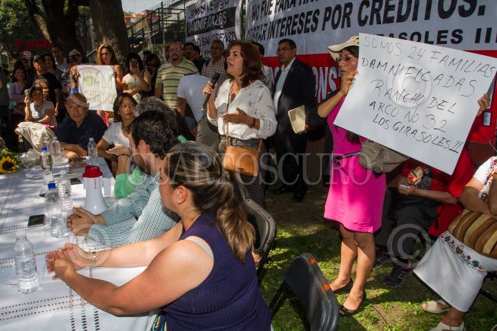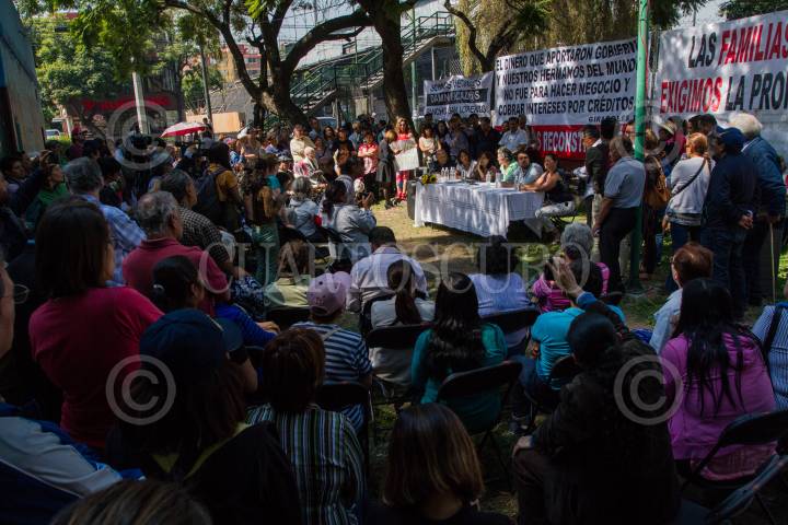 CIUDAD DE MÉXICO, 08NOVIEMBRE2017.- Damnificados del sismo del 19 de septiembre de las Unidades Habitacionales de Los Girasoles, al sur de la Ciudad de México, ofrecieron conferencia de prensa para hablar de la reconstrucción de sus edificios y de los apoyos que han recibido del gobierno. FOTO: ISAAC ESQUIVEL /CUARTOSCURO.COM