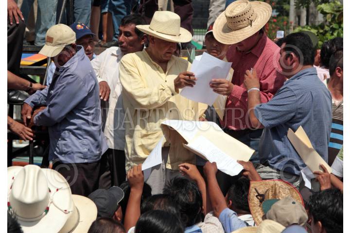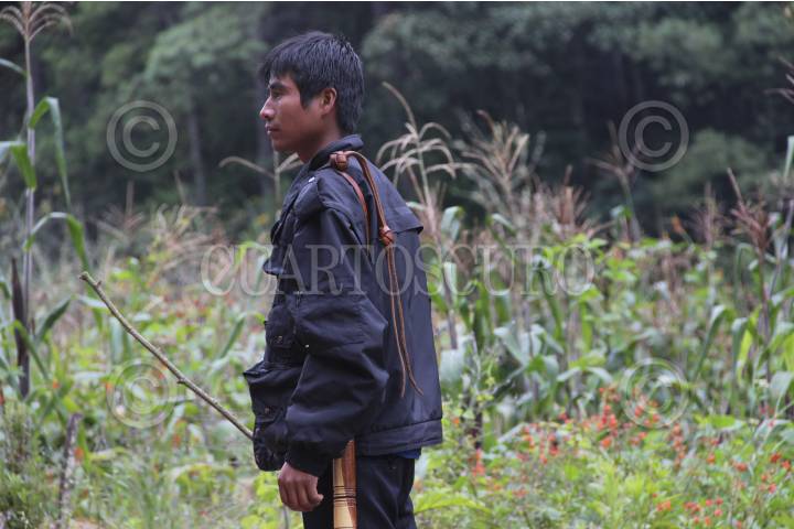 TLAHUILTOLTPEC MIXE, OAXACA, 18octubre2013.- Los Topiles, en las comunidades de la Mixteca, sobre todo las que se rigen bajo el Sistema de Usos y Costumbres, las cuales tienen administraciones que van de uno a tres años -dependiendo de sus tradiciones-, según las usanzas en la demarcación, en las comunidades se nombran cargos de sus autoridades; luego de elegir a sus ediles, el siguiente puesto a ocupar es el del topil, que puede ser representado por personas de la localidad, que oscilen entre los 15 hasta los 25 años de edad, pues según el Consejo de Ancianos de cada población, los jóvenes de esta edad ya son maduros para recibir los puestos que puedan desempeñar. El cargo de topil no es más que un guardia, encargado de la seguridad de la comunidad, y que a través del tequio o trabajo colectivo, está prestando un servicio a su población, en donde no recibirá ninguna remuneración, ya que el beneficio que presta es para su población y en caso de no cumplir con la tarea, podría ser sancionado. FOTO: JUAN JOSÉ ESTRADA SERAFÍN /CUARTOCURO.COM