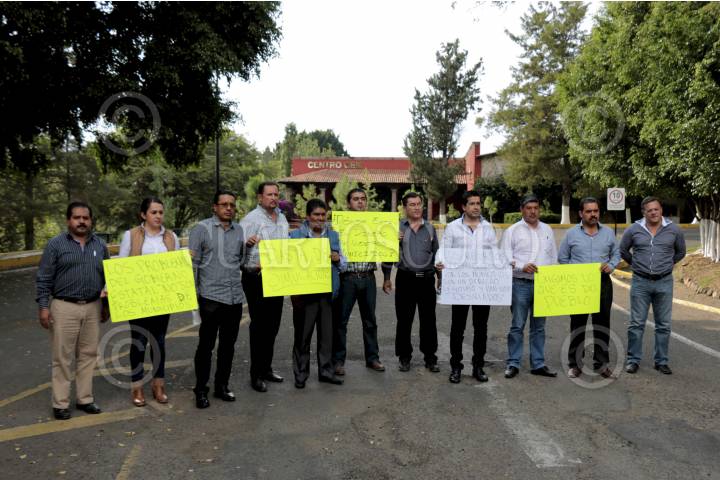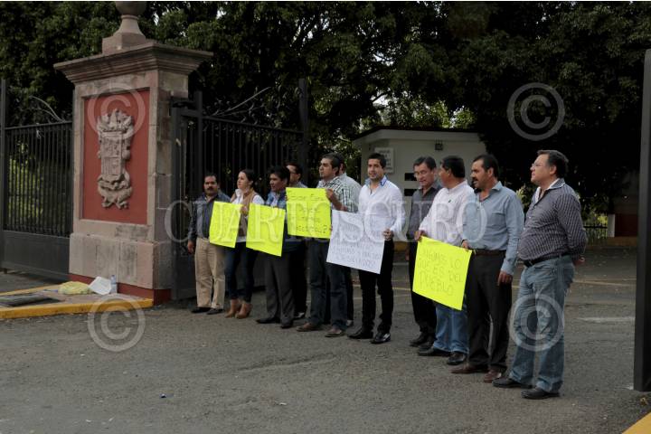 MORELIA, MICHOACÁN, 21AGOSTO2014.- Presidentes municipales de extracción perredista bloquearon la puerta de Casa de Gobierno exigiendo ser recibidos por el gobernador, Salvador Jara Guerrero, para exigirle la entrega de recursos etiquetados para la obra convenida. Esto después de sostener una reunión con el Secretario de Finanzas y el titular del Centro de Desarrollo Municipal. FOTO: ALAN ORTEGA /CUARTOSCURO.COM