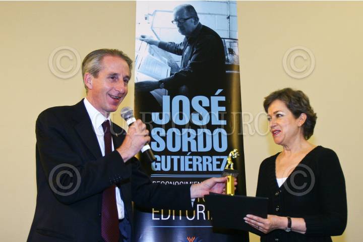 MÉXICO, D.F.,15JUNIO2010.- Joaquín Díez-Canedo, director del Fondo de Cultura Económica, entregó un reconocimiento al editor José Sordo Gutiérrez, el cual fue recibido por su esposa, durante la clausura la Feria del Libro Independiente que se realizaba en la librearía Rosario Castellanos, del Fondo de Cultura Económica. FOTO: ISAAC ESQUIVEL/CUARTOSCURO.COM