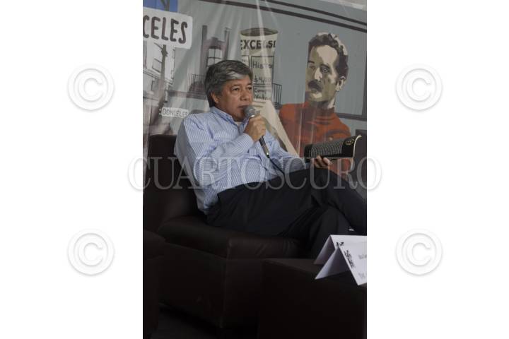 MÉXICO, D.F., 19OCTUBRE2012.- El editor Carlos López dio lectura a su libro y recibió un homenaje dentro de las actividades del Foro Carlos Fuentes de la XII Feria del Libro del Zócalo. FOTO: SANDRA PÉREZ /CUARTOSCURO.COM