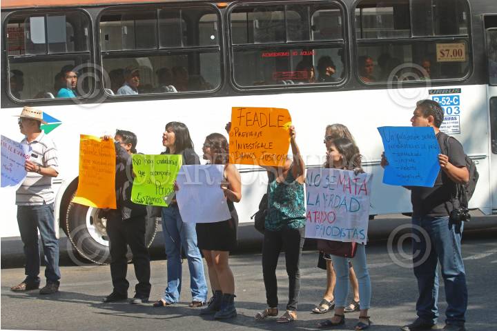 GUADALAJARA, JALISCO. 16MAYO2017.- Esta mañana decenas de periodistas tapatíos se congregaron a las afueras de la Delegación Estatal de la Procuraduría General de la Republica (PGR), para protestar por los hechos ocurridos la tarde de ayer en Sinaloa, donde un grupo de hombres armados le quitaron la vida al periodista y escritor Javier Valdez, Editor del semanario Rio Doce y corresponsal del Diario La Jornada, también los comunicadores exigieron a las autoridades por la seguridad de los trabajadores de los medios de Comunicación en México y que no queden impunes los ataques a los mismos, ya que los asesinatos han ido a la alza en los últimos años. FOTO : FERNANDO CARRANZA GARCIA / CUARTOSCURO.COM