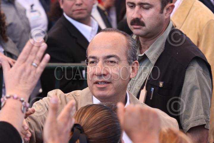 TULTITLAN, EDO. MÉXICO 03MARZO2009.- Felipe Calderon presidente de México a su llegada al municipio, en donde el mandatario presentó las acciones del ISSTE para cumplir con el acuerdo Nacional en favor de la economia familiar y el empleo FOTO: SÁSHENKA GUTIÉRREZ/CUARTOSCURO.COM