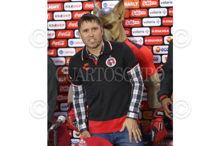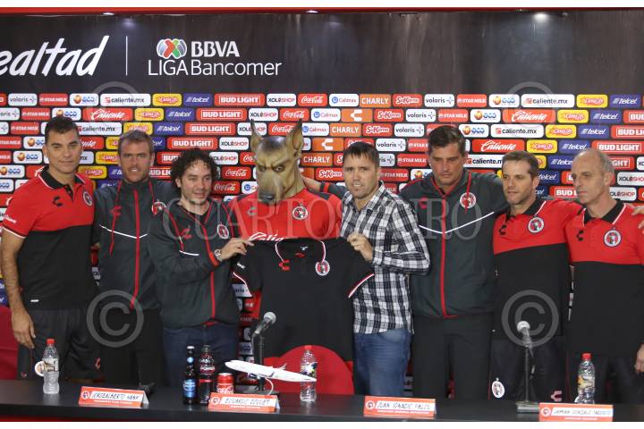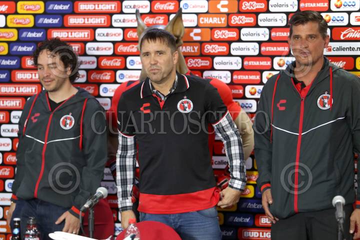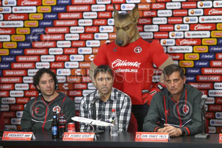 TIJUANA, BAJA CALIFORNIA, 12JUNIO2017.- Presentación del nuevo cuerpo técnico de Club Tijuana Xoloitzcuintles que encabeza el director técnico Eduardo “Chacho” Coudet, quien tomó las riendas del plantel Rojinegro de cara al inicio del Torneo Apertura 2017 de la LIGA MX. El presidente del club, Jorgealberto Hank encabezó a conferencia realizada en la sala de prensa del estadio Caliente. FOTO: CUARTOSCURO.COM