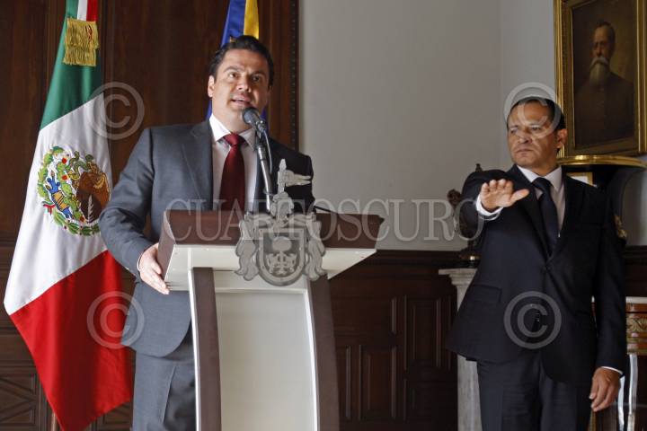 GUADALAJARA, JALISCO, 09JULIO2015.-Esta tarde en Palacio de Gobierno el Gobernador del Estado, Jorge Aristóteles Sandoval Díaz, tomo protesta al nuevo Fiscal General de la Entidad, Eduardo Almaguer. FOTO: FERNANDO CARRANZA GARCIA / CUARTOSCURO.COM