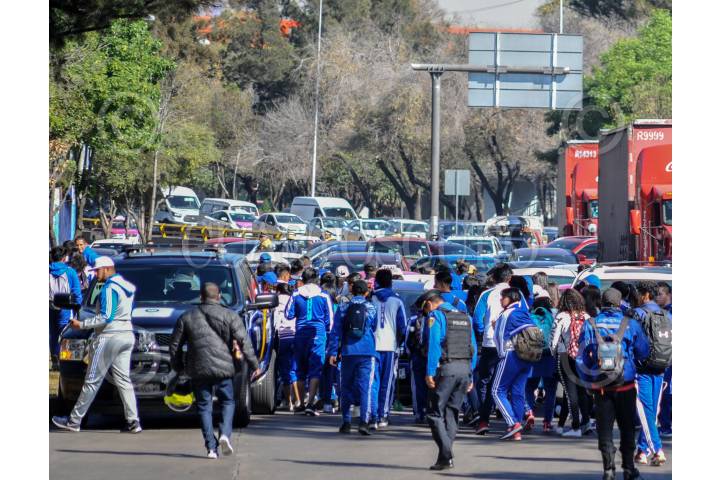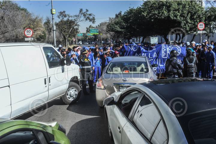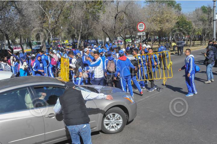 CIUDAD DE MÉXICO, 22ENERO2019.- Estudiantes de la Escuela Superior de Educación Física, bloquearon esta tarde la avenida Río Churubusco a la altura del palacio de los Deportes, para exigir a la Secretaria de Educación Pública (SEP), que se actualicen los planes de estudio y mejoramientos de las instalaciones del plantel educativo. FOTO: ARMANDO MONROY /CUARTOSCURO.COM