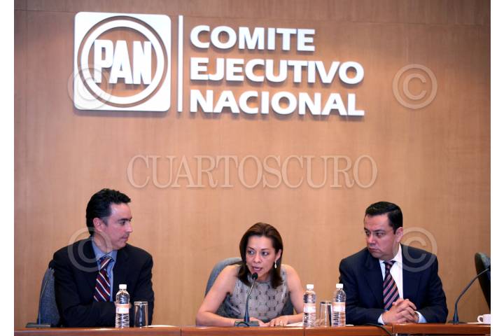 MÉXICO, D.F 19MAYO2008.- Josefina Vázquez Mota Secretaria de Educación,acompañada por German Martínez, Presidente del pan en conferencia de prensa al termino de la reunión con miembros del comite ejecutivo nacional. FOTO: CUARTOSCURO.COM