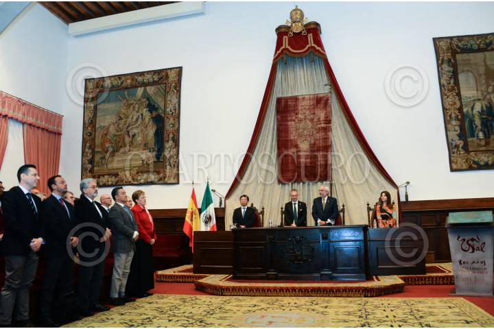 SALAMANCA, ESPAÑA, 05ABRIL2019.- Enrique Graue, rector de la UNAM, y Ricardo Rivero rector de la Universidad de Salamanca (USAL), encabezaron la ceremonia en conmemoración de los "500 años de historia de México y España" una historia común con la confirmación de posgrados compartidos en las diversas áreas que se imparten en ambas instituciones. FOTO: UNAM /CUARTOSCURO.COM