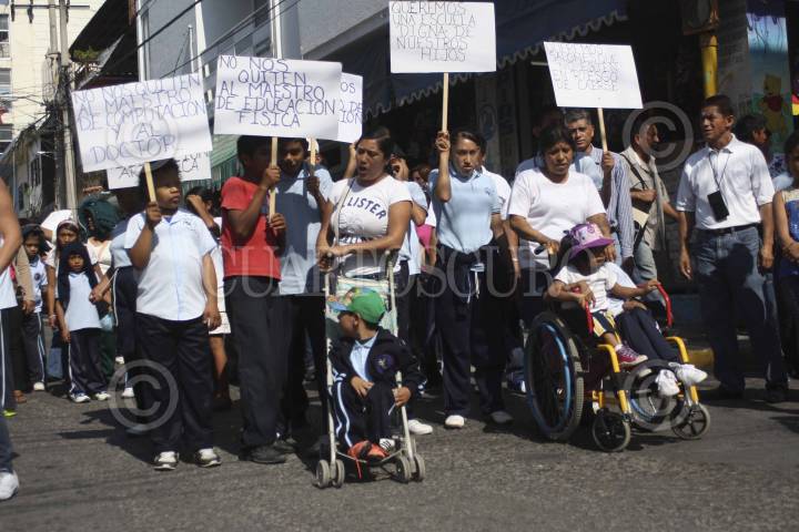 CHILPANCINGO, GUERRERO, 06DICIMBRE2013.- Estudiantes, maestros y alumnos del Instituto de Educación Especial CAM 01, marcharon de la alameda Granados Maldonado a la Residencia oficial del Gobierno del Estado, para exigir la rehabilitación de su edificio y que las materias de educación física, arte y matemáticas, no sean eliminadas. FOTO: JOSÉ I. HERNÉNDEZ /CUARTOSCURO.COM