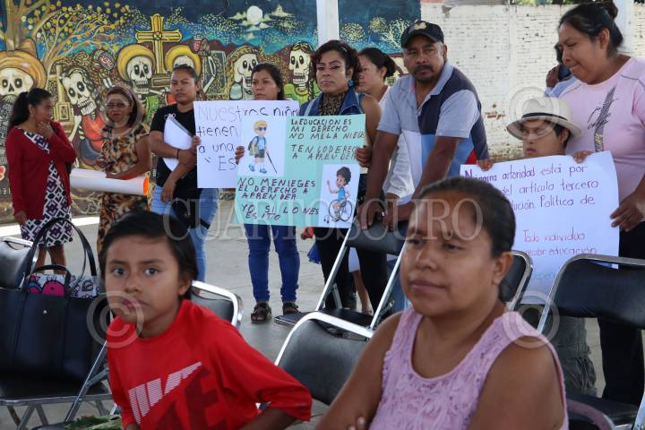 OAXACA, OAXACA, 19AGOSTO2024.- Padres de familia del Centro de Atención Múltiple (CAM) Donají número 65, ubicado en la Ciudad de Oaxaca, denunciaron que desde el 17 de agosto autoridades ejidales se apoderaron de las instalaciones bajo el argumento de que el terreno donde se ubica el espacio que por 17 años ha atendido a alumnos con diversas discapacidades, es propiedad ejidal. Los padres, pidieron a las autoridades estatales y agrarias atender el asunto y no dejar sin escuela a 42 niños que asisten a este centro educativo. FOTO: CAROLINA JIMÉNEZ/CUARTOSCURO.COM