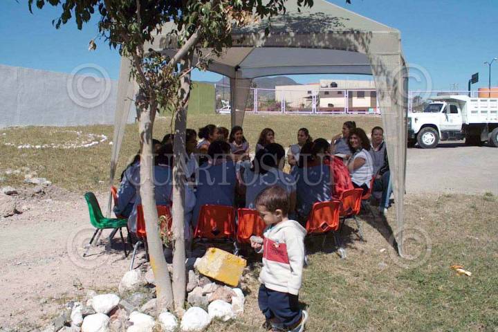 CHILPANCINGO, GUERRERO, 11FEBRERO2005.- Padres de familia y educadoras del Cendi Comunidad Infantil de esta ciudad, prohibieron los trabajos de construcción de un centro comercial en sus áreas verdes, ya que esto dañaría a los niños que asisten a dicho plantel. FOTO: Oscar Alvarado/CUARTOSCURO.COM