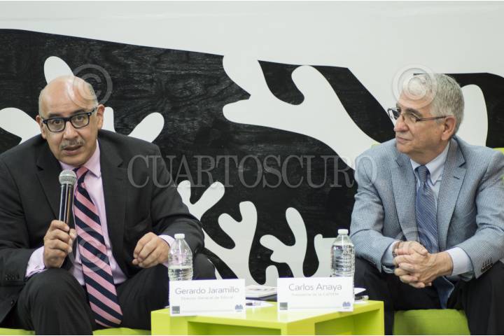 CIUDAD DE MÉXICO, 30MAYO2016.- Gerardo Jaramillo, director general de Educal, y Carlos Anaya, presidente de la CANIEM, encabezaron la conferencia de prensa para anunciar el programa “ÉntreLee”, el cual otorgara un 25% de descuento en libros para niños y jóvenes en las editoriales participantes como son el Fondo de Cultura Económica, Artes de México y el CIDCLI. La iniciativa busca atraer a jóvenes y niños al mundo de los libros. FOTO: GALO CAÑAS /CUARTOSCURO.COM