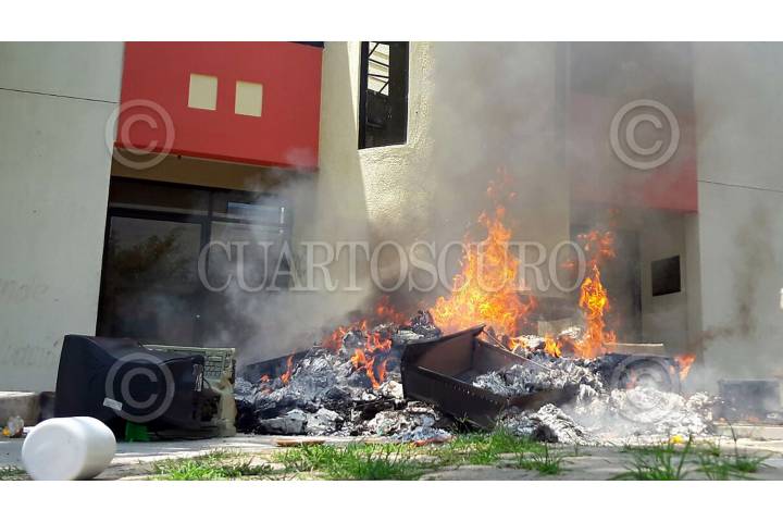 CINTALAPA, CHIAPAS, 08JUNIO2017.- Aproximadamente 200 maestros pertenecientes a la Coordinadora Nacional de Trabajadores de la Educación, quemaron papelería y mobiliario de una oficina de supervisión escolar en la localidad, esto como acto de protesta por la notificacion de examenes a docentes bajo la nueva reforma educativa. FOTO. JESÚS GARCÍA /CUARTOSCURO.COM