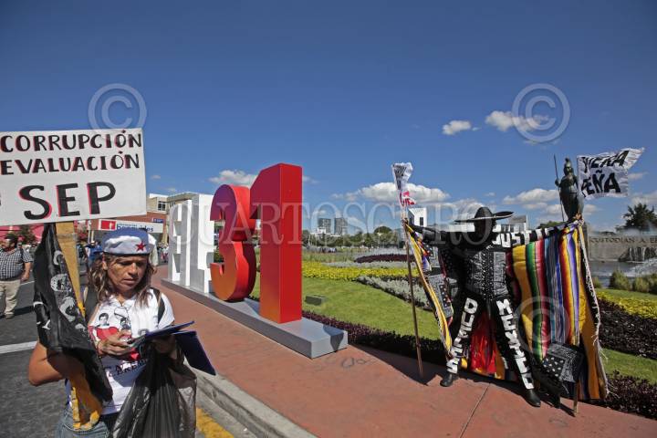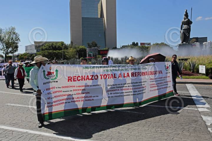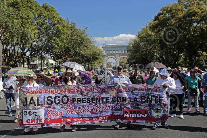 GUADALAJARA, JALISCO. 13NOVIEMBRE2017.- Alrededor de 2 mil docentes de Jalisco, Michoacán, Colima, Guerrero, Durango, Oaxaca y Chiapas afines a la (CNTE), se manifestaron por las principales avenidas de la ciudad para protestar en contra de la Reforma Educativa, el despido de docentes, así como por los presos políticos entre otras causas, la caminata comenzó en la Glorieta de la Minerva y Concluyo en Palacio de Gobierno en el centro de la ciudad. FOTO: FERNANDO CARRANZA GARCIA / CUARTOSCURO.COM