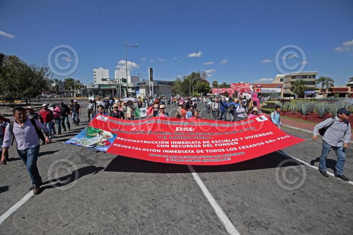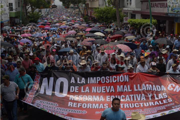 TUXTLA GUTIÉRREZ, CHIAPAS, 15MAYO2019.- Maestros integrantes de la Coordinadora Nacional de Trabajadores de la Educación sección VII, realizaron una marcha desde el parque Chiapasionate hasta el Zócalo, en donde permanecerán durante las siguientes 72 horas para exigirle al gobierno cumpla con sus peticiones y se revise la reforma educativa. Los maestros informan que a muchos se les deben sueldos y que las escuelas dañadas por el sismo del 19 de septiembre siguen sin reparaciones. FOTO: ISABEL MATEOS /CUARTOSCURO.COM