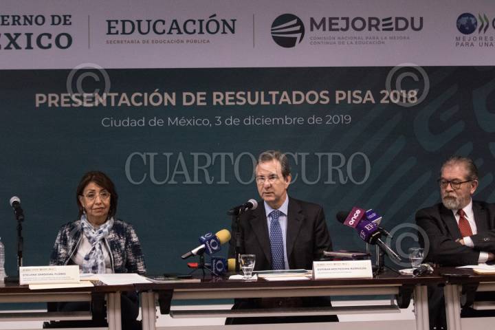 CIUDAD DE MÉXICO, 03DICIEMBRE2019.- Este medio día se presentÓ el Informe de Actividades de PISA 2018. Encabezo el evento el titular de Educación Pública, Esteban Moctezuma Barragán; Etelvina Sandoval, lo acompaña en el evento. FOTO: VICTORIA VALTIERRA /CUARTOSCURO.COM