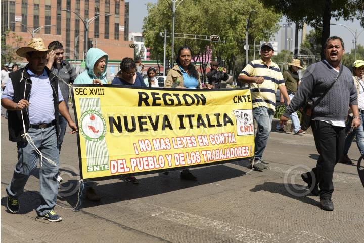 MÉXICO, D.F., 18MAYO2015.- Miembros de la CNTE de diferentes secciones del estado de Michoacan, marcharon sobre avenida Reforma, exigiendo al estado, no más leyes en contra del pueblo y de los trabajadores, como la nueva reforma educativa impuesta por el gobierno federal. FOTO: ISABEL MATEOS /CUARTOSCURO.COM