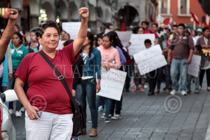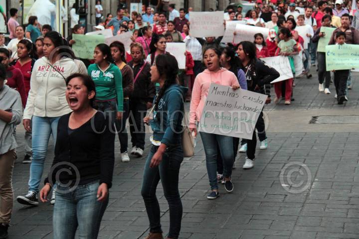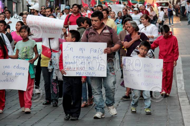 CUERNAVACA, MORELOS, 11NOVIEMBRE2015.- Maestros, padres de familia y estudiantes de la Escuela Normal de Amilcingo se manifestaron en el centro de la capital. La movilización fue convocada por el Movimiento Magisterial de Bases y la Coordinadora Nacional de los Trabajadores de la Educación (CNTE), en demanda de diálogo sobre la reforma educativa. FOTO: PATRICIA MORALES /CUARTOSCURO.COM