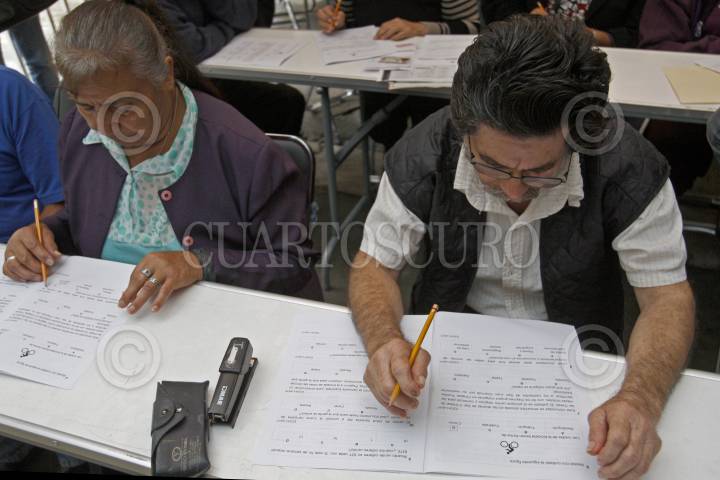 GUADALAJARA, JALISCO, 14JULIO2016.-Con el objetivo de abatir el rezago educativo y mejorar las condiciones de desarrollo social dentro del plan de inclusión de la SEDESOL, adultos mayores realizaron examen para obtener su certificación de primaria y secundaria, esto en las instalaciones de la delegación estatal de la Secretaria de Desarrollo Social, (SEDESOL). FOTO : FERNANDO CARRANZA GARCIA / CUARTOSCURO.COM
