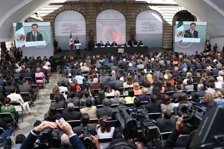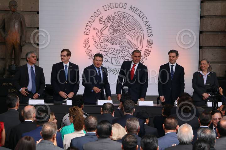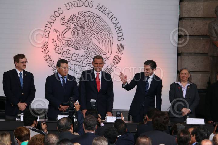 CIUDAD DE MEXICO, 20JULIO2016.- Aurelio Nuño Mayer Secretario de Educación Pública, acompañado de Gabino Cue Monteagudo, presidente de la CONAGO, Juan Diaz de la torre líder del SNTE, Silvia Schemeekers, consejera presidenta del INEE, Carlos Romero Hicks, senador y Hortensia Aragón, diputada, durante la presentación del modelo educativo y la propuesta curricular para la educación obligatoria. FOTO: SAÚL LÓPEZ /CUARTOSCURO.COM