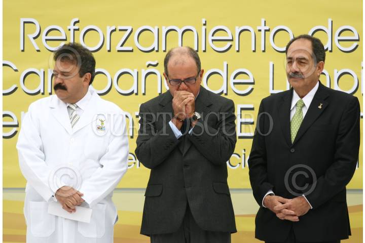 MÉXICO, D.F., 06NOVIEMBRE2009.- Armando Ahued secretario de salud del Distrito Federal acompañado por Luis Ignacio Sánchez Y Mario Cariilo secretario de educación del Distrito federal durante el evento que se ralizo en la Escuela Primaria Rafael molina Betancourt, donde se dio inicio a la camapa de reforzamiento de limpieza de planteles Educativos que tiene como fin evitar el contagio del virus AH1N1. FOTO: SÁSHENKA GUTIÉRREZ/CUARTOSCURO.COM
